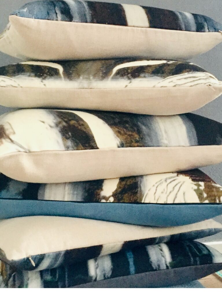 After the Mongolian journey Léonce started painting. In Mongolia she visited a factory selling products from 100% pure Mongolian cashmere with the most beautiful prints. This was her inspiration for the Project Art on Textiles. Fragments of her paintings have been printed on silk fabrics, and she created pilows and lampshades.