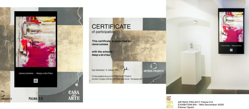 Two artworks were digitally presented at the ArtBox Project 3.0. in Palma de Mallorca. An international platform showcasing contemporary artists and innovative abstract work Grateful for this recognition and the global visibility it brings.