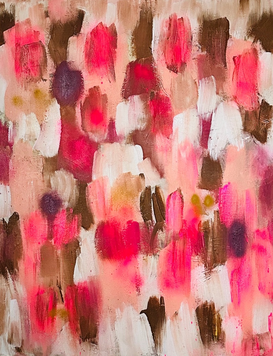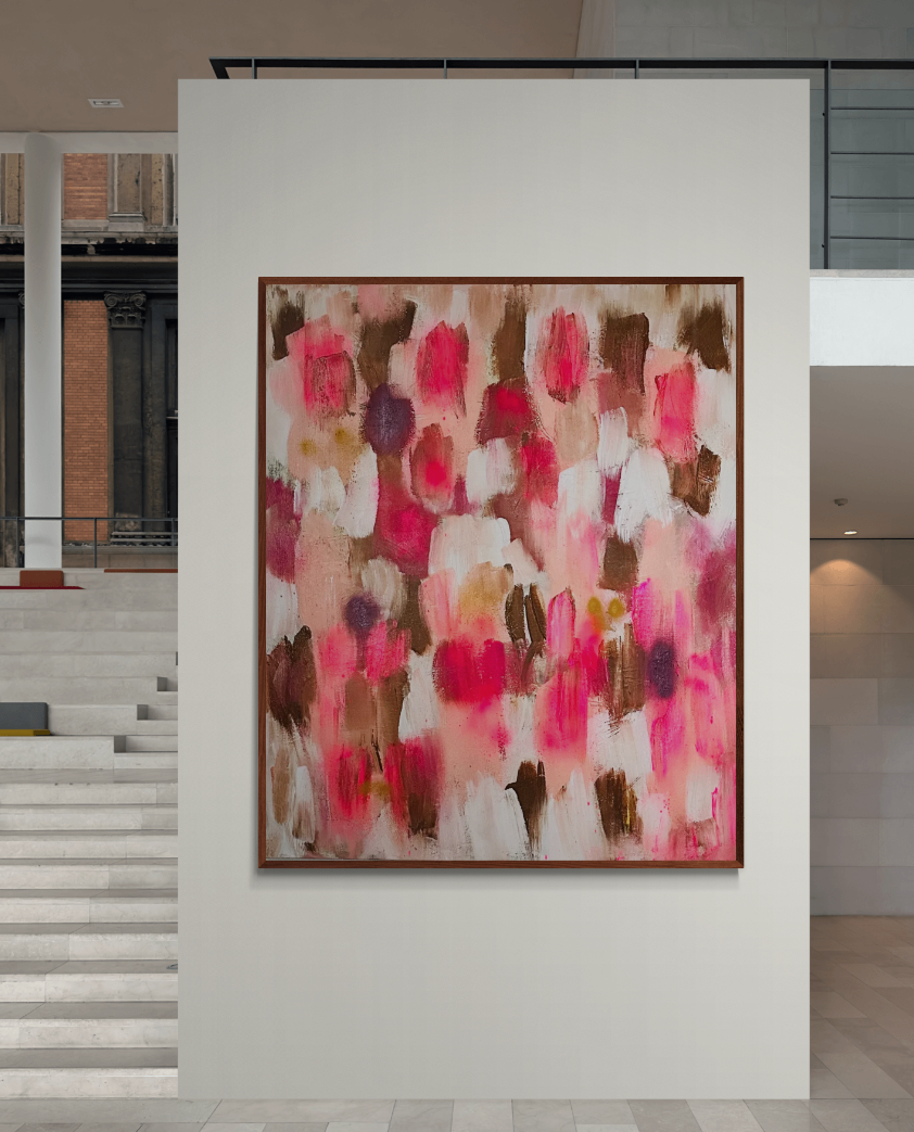 Pulse of Pink is an abstract expressive artwork of vibrant pinks and earthy tones with rhythmic brushstrokes